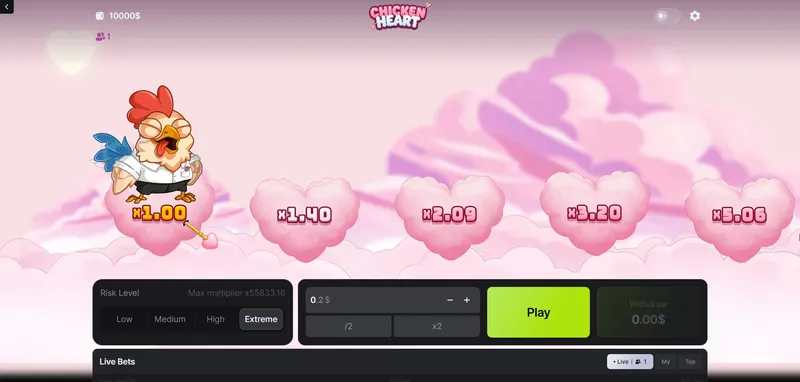 Chicken heart delivers not only visual delight but also robust gaming stats. With a theoretical RTP of 97%, it offers excellent long-term value and sustained play potential. Adjustable volatility lets everyone tailor their experience, whether preferring frequent smaller wins or daring to pursue massive jackpot moments.